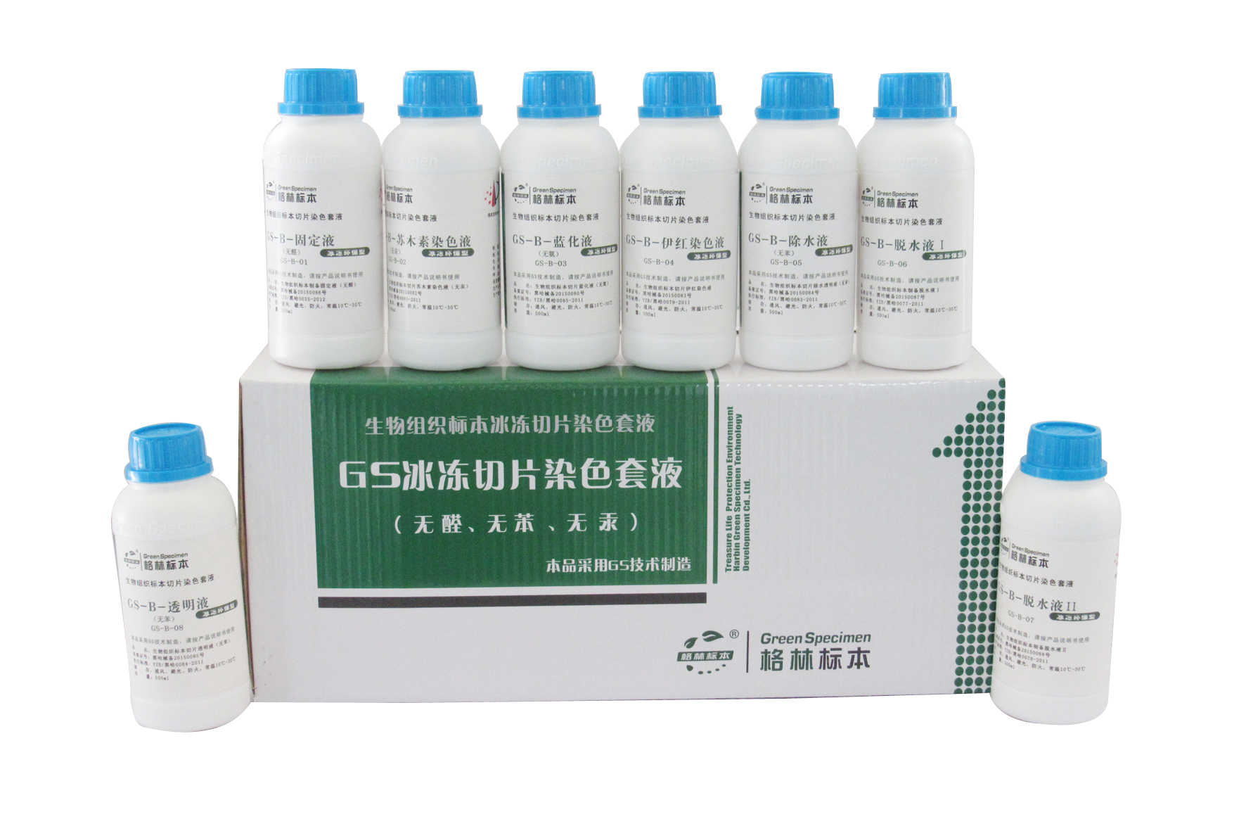 哈爾濱格林標(biāo)本技術(shù)開發(fā)有限公司為了免除甲醛、二甲苯、氧化汞等對于病理工作者身體及環(huán)境的危害,本著健康、環(huán)保、優(yōu)質(zhì)的原則,多年來一直致力于環(huán)保病理試劑的科研和開發(fā),經(jīng)不斷探索、嘗試和實踐應(yīng)用,***終研發(fā)出病理專用環(huán)保試劑“GS組織樣本制備及切片染色系列試劑”,該試劑不含甲醛、二甲苯、氧化汞等對人身和環(huán)境有極大危害的有毒化學(xué)試劑,其功效完全優(yōu)于目前大量使用的以甲醛、二甲苯為主的傳統(tǒng)病理試劑,是完全可以替代傳統(tǒng)有毒試劑并具有強烈革命色彩的全新環(huán)保試劑產(chǎn)品。
